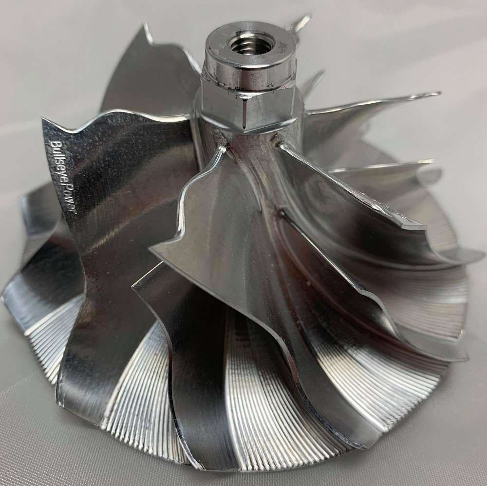 The Bullseye Power drop-in BatMoWheel exclusive leading edge technology offers quicker spool times and increased flow rates, providing up to 100 horsepower more than a cast or standard-billet counterpart. Designed as a true drop-in upgrade, these wheels offer an affordable, DIY option for increased performance without the price tag of an aftermarket turbocharger.